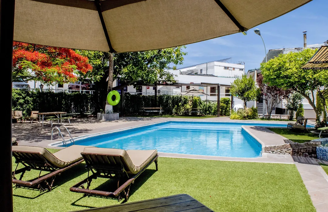 Υπάρχει εξωτερική πισίνα σε ξενοδοχείο.